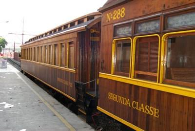 Carros de madeira fabricados na Inglaterra para a São Paulo Railway em 1914. Restaurados e usados no trem do Museu do Imigrante. Fabricante desconhecido.
