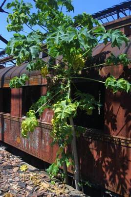 O mato cresce nos carros de aço carbono American Car and Foundry (1929).