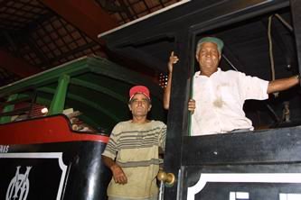 Os preservacionistas mais radicais não gostam da pintura, por achá-la um pouco exagerada, principalmente o branco adotado na frente de algumas locomotivas.Mas isso não tem a menor importância para Moacyr Carolino dos Reis e Valter Gomes CoutinhoGraças à iniciativa do Sesc-MG, eles voltaram a exercer suas antigas profissões de maquinista e foguista, depois de dez anos trabalhando como vigia nas usinas de cana para sobreviver. |